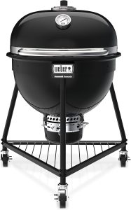 Ma dernière acquisition et non la moindre! Suite à plusieurs problèmes avec mon Bradley lors des longues cuissons, on m’a conseillé de bouger vers le charbon de bois et un fumoir de type kamado. Il y avait évidemment beaucoup de choix mais le summit revenait souvent. C’est non seulement un incroyable BBQ mais c’est surtout un fumoir. Il a les mêmes caractéristiques qu’un Kamado Joe ou qu’un Big Green Egg mais en 100 fois moins lourd. En effet, au lieu d’être en céramique, c’est fait en métal double-épaisseur avec de l’air entre les 2 ce qui lui confère d’incroyables capacités d’isolation.