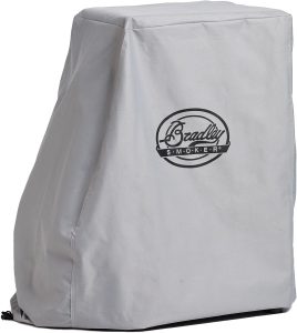 Comme la forme est assez spéciale, pas le choix d’y aller avec celle de la même marque si vous voulez laisser le générateur de fumé à l’extérieur. J’ai essayé avec une petite housse à BBQ mais c’était toujours trop grand et trop lousse. C’est une super bonne housse et ça permet de protéger le fumoir contre les intempéries alors vous la recommande fortement.